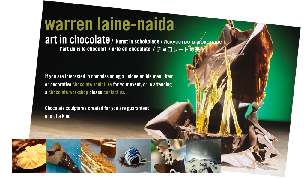 contributed to cook books and in 2009 published "Art in Chocolate". His menus and